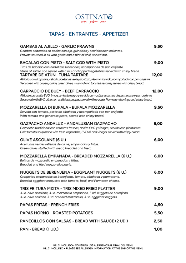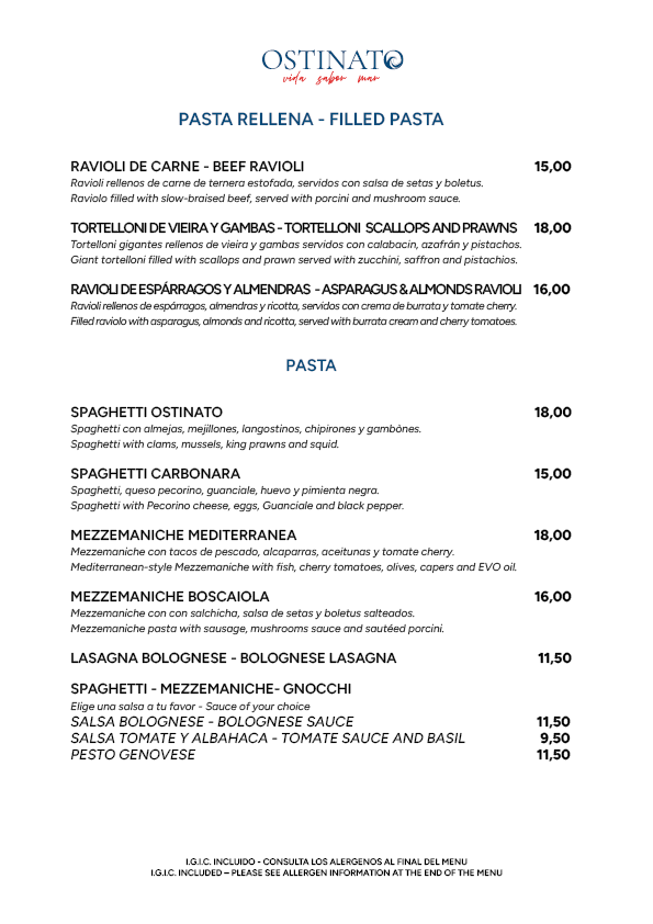 Ostinato es un restaurante premium en El Médano, Tenerife Sur, donde la cocina italiana y mediterránea se expresa a través de productos seleccionados, elaboraciones cuidadas y un servicio genuinamente amable. Nuestra especialidad es la pasta de alta calidad, incluida una cuidada selección de pasta rellena, elaborada para ofrecer textura, equilibrio y sabor auténtico. A ello se suman nuestras paellas, tambièn para una sola persona, pensadas para disfrutar de un plato tradicional con técnica, respeto por el producto y presentación impecable.